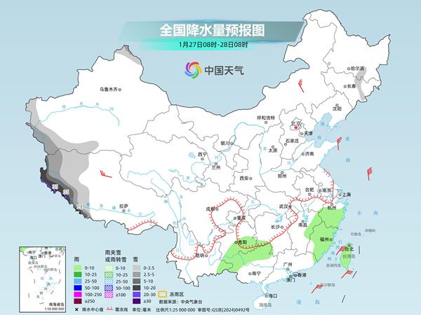 今明天(1月27日至28日),我国中东部地区降水日渐减少,西藏降雪将增多、增强,局地或有特大暴雪,需注意防范。气温方面,未来几天,我国大部气温多起伏,南方部分地区气温波动明显,公众请适时调整着装。